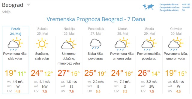 Moramo napomenuti da se vremenska prognoza za sve gradove ažurira svakih 10 minuta te nemožemo garantovati za tačnost podataka na ovome sajtu iako su preneseni u najboljoj nameri da vas. Vesti vremenska prognoza tv program kursna lista. Vreme beograd danas po satima. Izgledi vremena za beograd i širu okolinu za period.