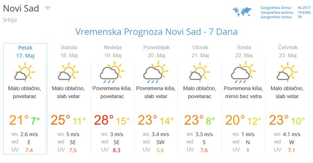 Vremenska Prognoza Novi Sad Danas Sutra 7 Dana