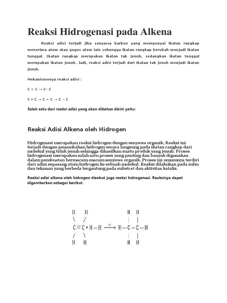 Mekanisme Reaksi Hidrogenasi Alkena Belajar Kimia