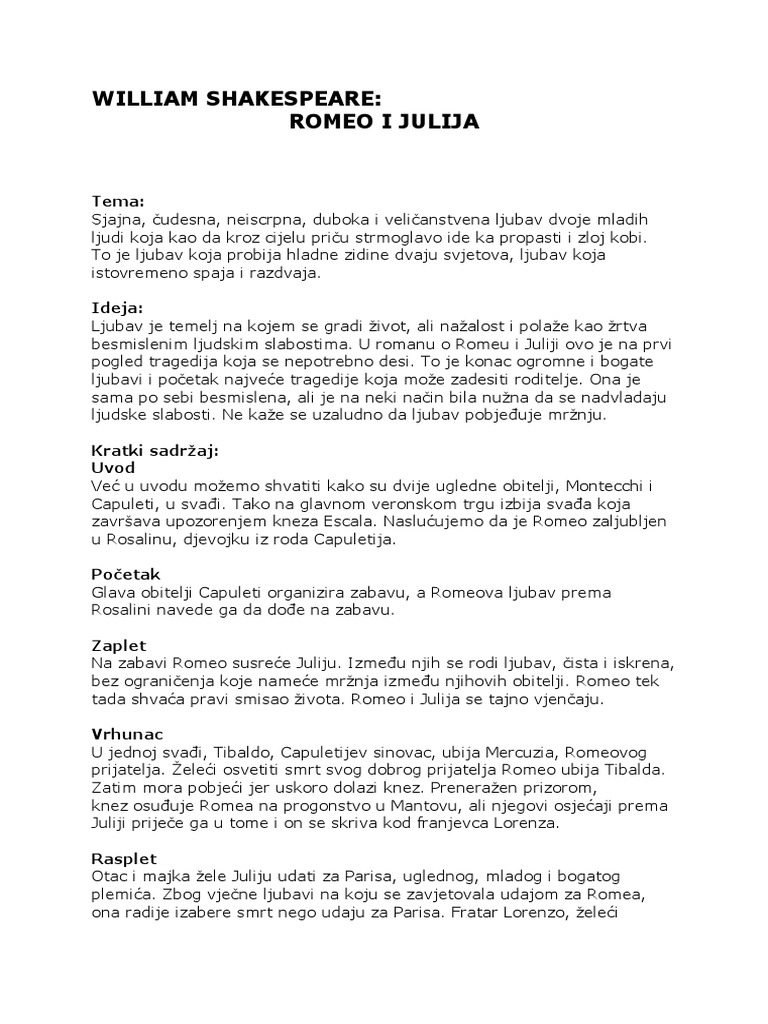 Romeo I Julija Lektira Prepricano