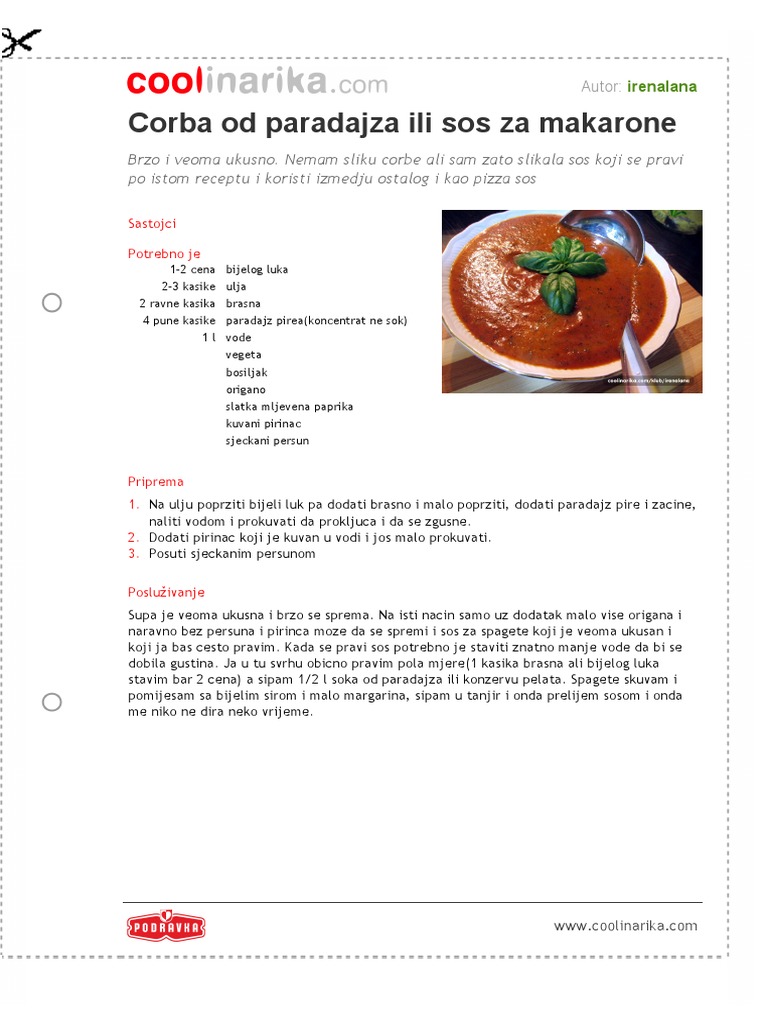 Sos Od Paradajza Za Spagete Mladost Supe Leskovac Zadovoljstvo Za Celu Porodicu