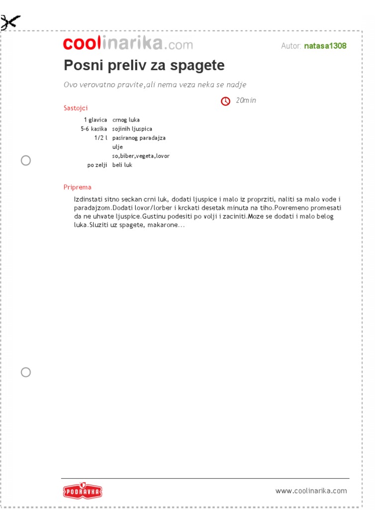 Posni Preliv Za Spagete