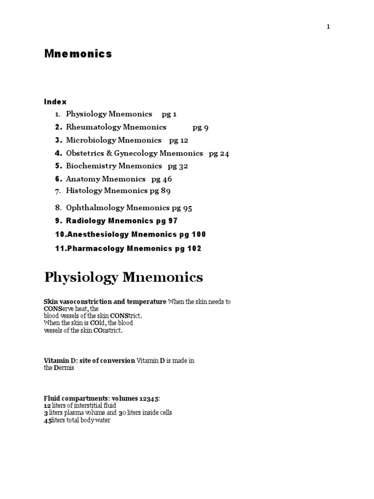 Anatomy Medical Mnemonics Com