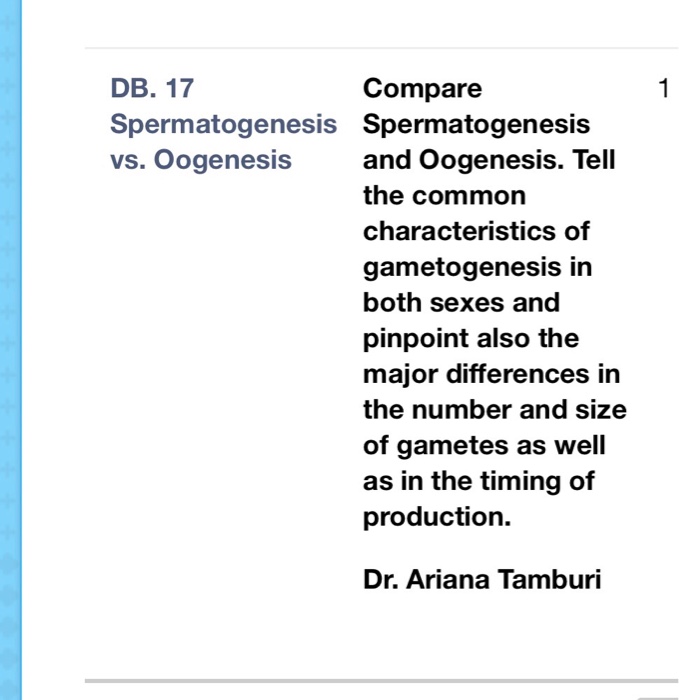 Solved Db 17 Spermatogenesis Spermatogenesis Vs Oogenes Chegg Com