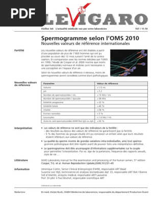 Accueil Du Patient Le Spermogramme Selon L Oms Organisation Mondiale De La Sante Pdf Free Download