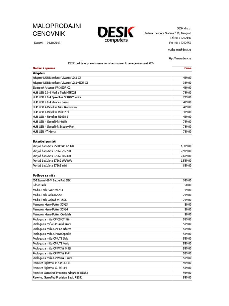Mp Cenovnik