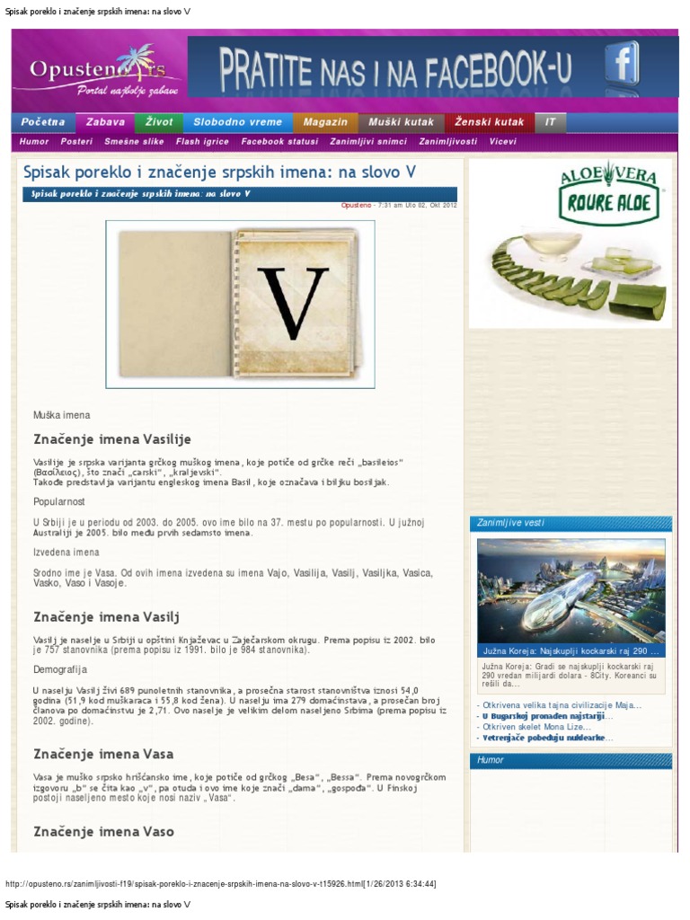 Srpska Imena Na Slovo V