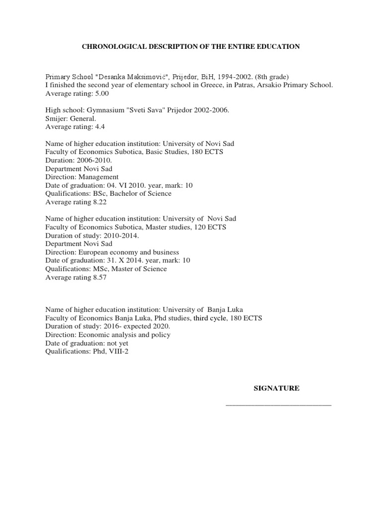 Chronological Description Of The Entire Education Titles Educational Stages